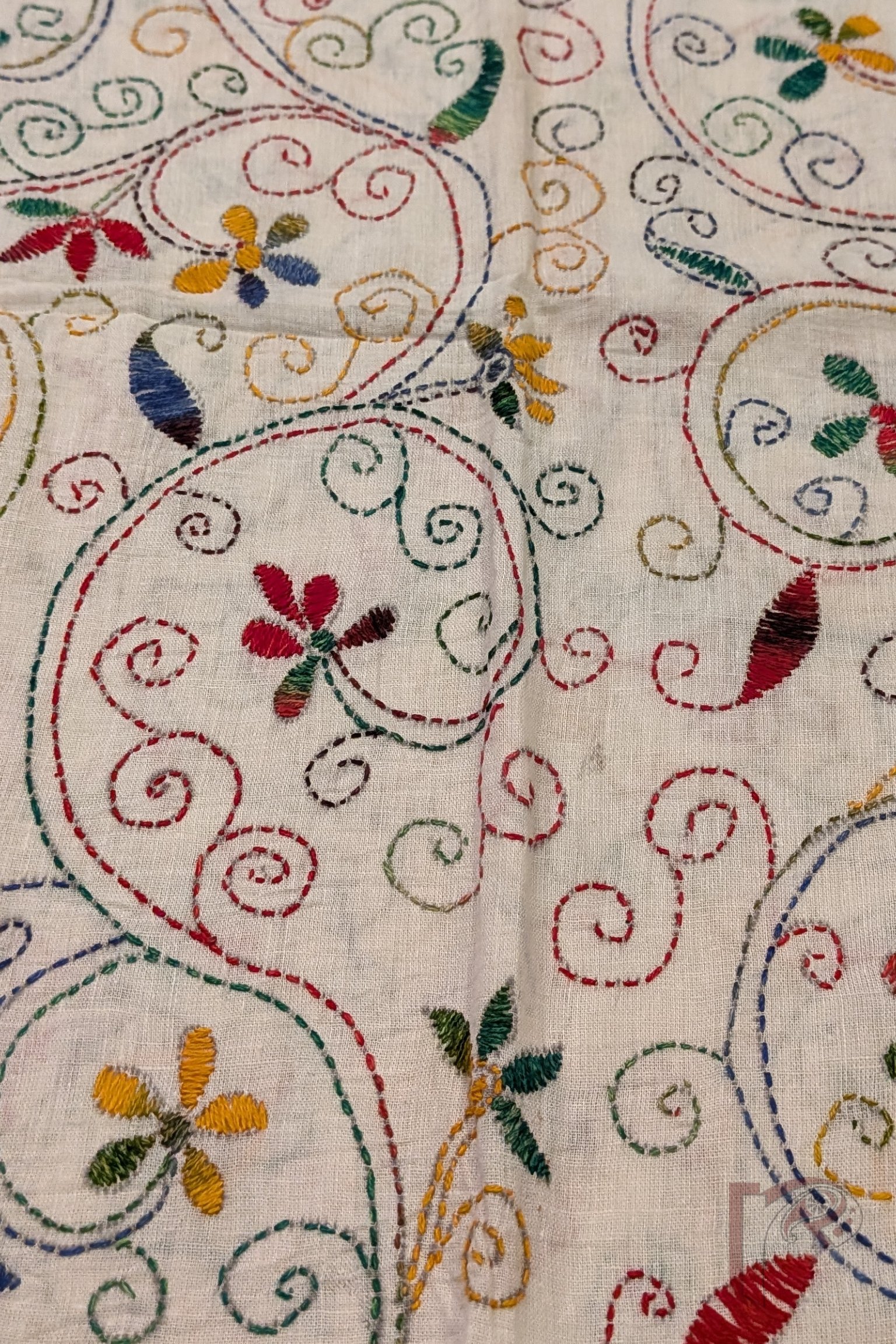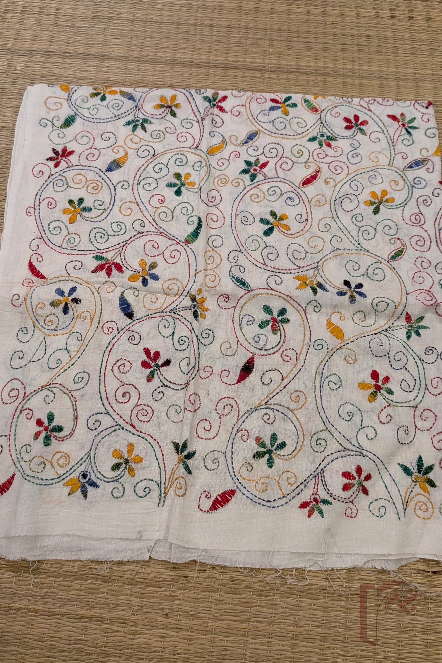 Celebrate the confluence of tradition and craftsmanship with our exquisite collection of Cotton Full Kantha Weave Unstitched Blouse Pieces from West Bengal. Hand-embroidered with precision and soul, each piece in this collection is a tribute to the timeless Kantha craft—a needlework legacy passed down through generations of skilled artisans. Every thread woven into the fabric tells a story of folklore, nature, and everyday life, brought alive through intricate motifs and fluid stitch patterns.