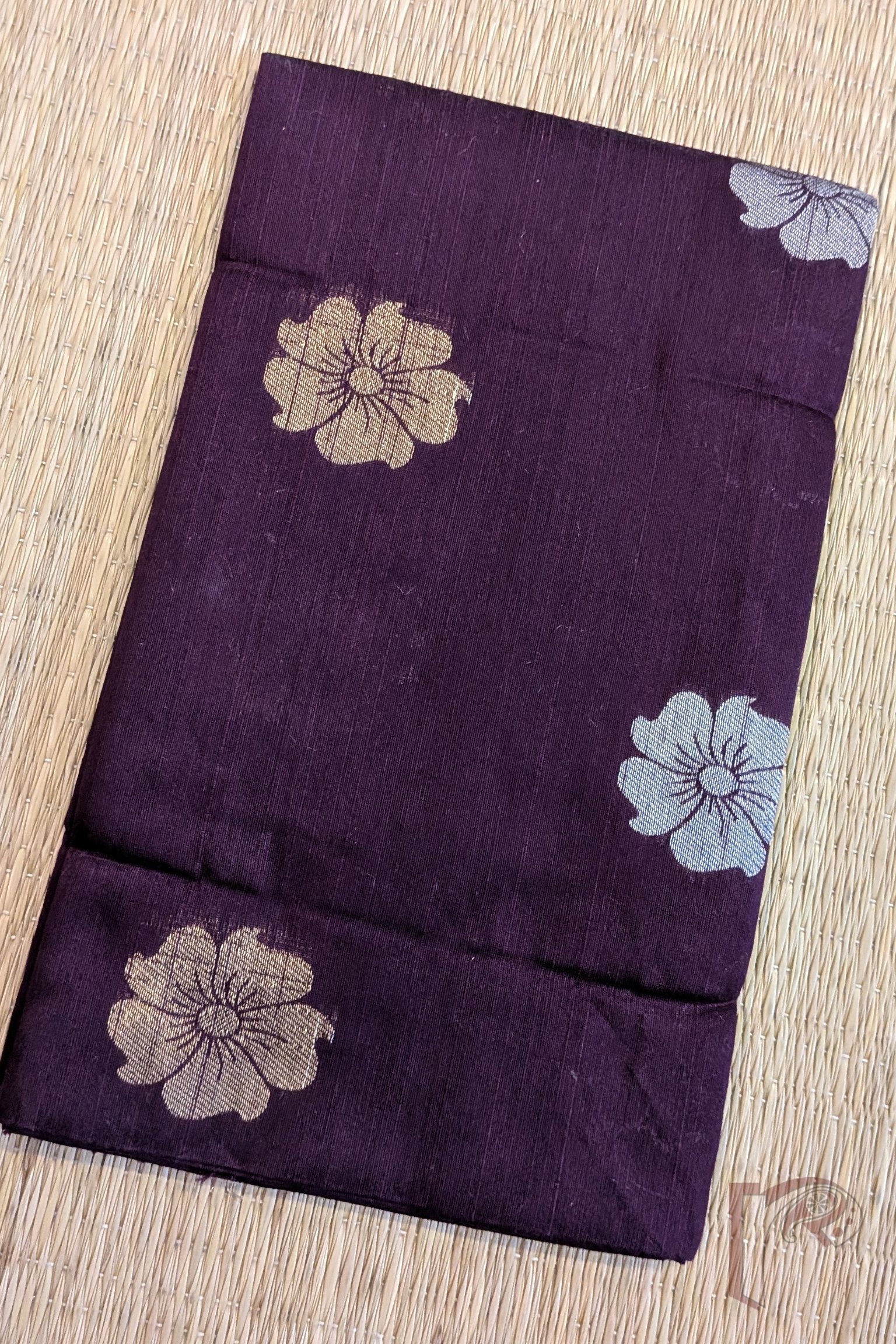 Wine Raw Silk Unstitched Blouse Piece with Gold and Silver Floral Motifs