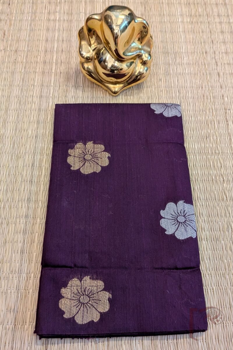 This wine raw silk unstitched blouse piece radiates regal elegance with its large gold and silver flower motifs in machine weave. The rich wine base enhances the metallic shine, giving the fabric a luxurious, festive appeal. Ideal for weddings or evening sarees, its soft yet structured raw silk texture allows for precise stitching while maintaining a natural sheen. Stitch it into a modern cut or a traditional silhouette—the blouse promises to make a bold, sophisticated statement.